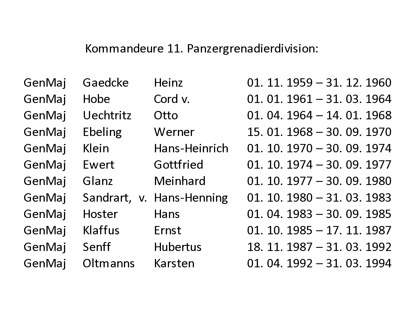 Kommandeure 11. PzGrenDiv 1959 - 1994